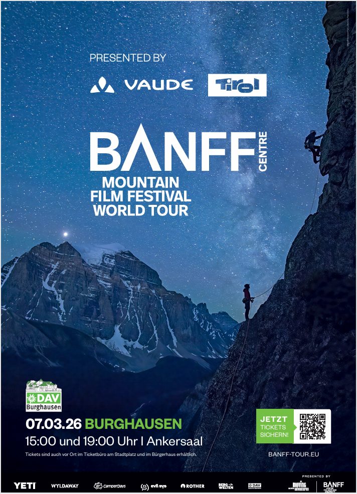 Ende Januar startet in Deutschland wieder die BANFF Mountain Film Festival World Tour und wir als DAV-Sektion haben das Programm für Euch nach Burghausen geholt – diesmal sogar mit 2 Vorstellungen: