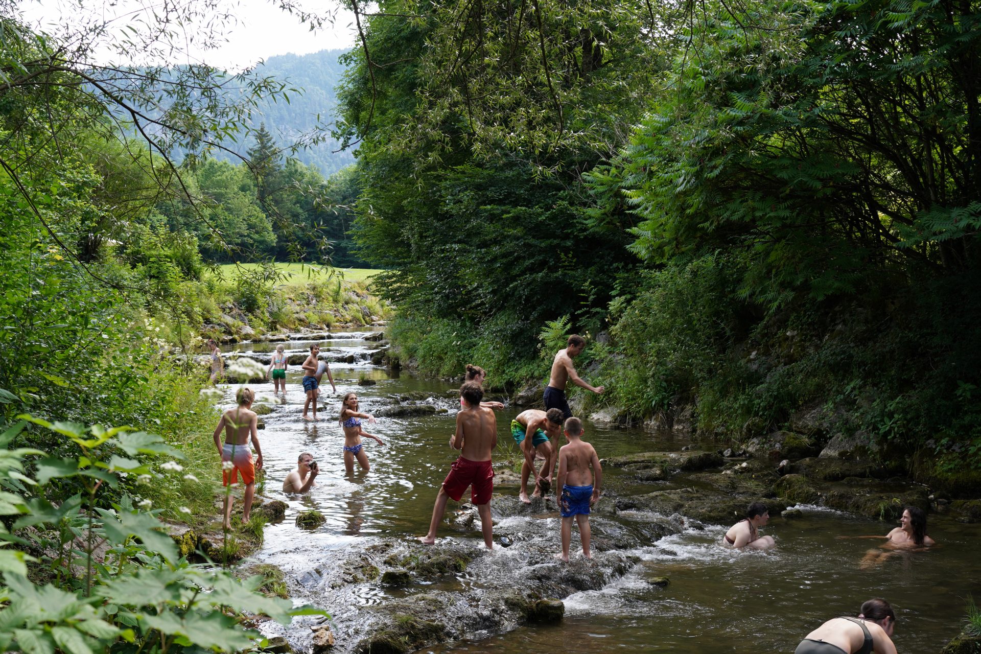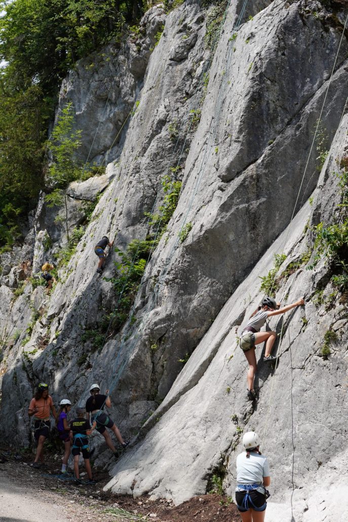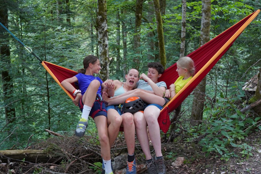 Am Freitagnachmittag den 04.07.2025 trafen sich die beiden Jugendgruppen „Kampfzwerge“ und „Kletterninjas“ um 17 Uhr an der Kletterhalle Burghausen, um gemeinsam in ein spannendes Wochenende voller Kletteraction und Naturerlebnisse zu starten. Nach der Ankunft am Campingplatz Litzelau ging es direkt ans Werk: Während das Zeltteam mit viel Einsatz das Basecamp aufbaute, kümmerte sich das Küchenteam um die Zubereitung eines leckeren Abendessens mit gegrilltem Gemüse, Käse und frischen Salaten sowie gefüllten Champignons. Der erste Abend klang mit einer unterhaltsamen Runde Werwolf aus, bevor sich alle, voller Vorfreude auf den nächsten Tag in ihre Zelte verzogen. Am Samstag starteten wir mit einem gemeinsamen Frühstück in den Tag. Anschließend wurden die Rucksäcke gepackt, und zu Fuß machten wir uns auf den Weg zum Auer Wandl. Dort sammelten viele ihre ersten Erfahrungen am Fels – mit Begeisterung und viel Kletterlust wurde geklettert, gesichert und angefeuert. Zurück im Camp war erst einmal Abkühlung angesagt: Ein Sprung in den Fluss brachte die nötige Erfrischung. Anschließend bereitete das Küchenteam ein deftiges Chili sin Carne und Stockbrotteig vor. Auf dem Platz wurde währenddessen Ball gespielt, Stöcke geschnitzt und im Sandkasten gebuddelt – kreativ und mit viel Energie. Nach dem gemeinsamen Abendessen wurde wieder Werwolf gespielt, aber auch eine Partie Schafkopfen durfte nicht fehlen. Ein plötzlicher Regenschauer sorgte für eine kleine Unterbrechung und einige nasse Zelte. Doch nach dem kurzen Schrecken kehrte schnell wieder Ruhe ein. Am Sonntagmorgen wurde nach dem Frühstück zügig abgebaut und alles in den Autos verstaut. Danach fuhren wir zum Zellersee, wo eine Gruppe baden ging, während der Rest weiter zur Zellerwand aufbrach, um noch einmal richtig zu klettern. Gegen 14:30 Uhr mussten wir wetterbedingt leider früher als geplant die Heimreise antreten. Um 16 Uhr kamen alle wohlbehalten wieder an der Kletterhalle Burghausen an – mit vielen neuen Eindrücken und schönen Erinnerungen im Gepäck. Besonders schön war für die „Kletterninjas“, dass sich die Gruppen zusammengeschlossen haben. Es entstanden neue Freundschaften, und die Gruppen wuchsen im Laufe des Wochenendes richtig zusammen. Ein rundum gelungenes Wochenende – wir freuen uns schon auf das nächste Abenteuer!