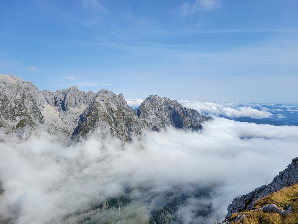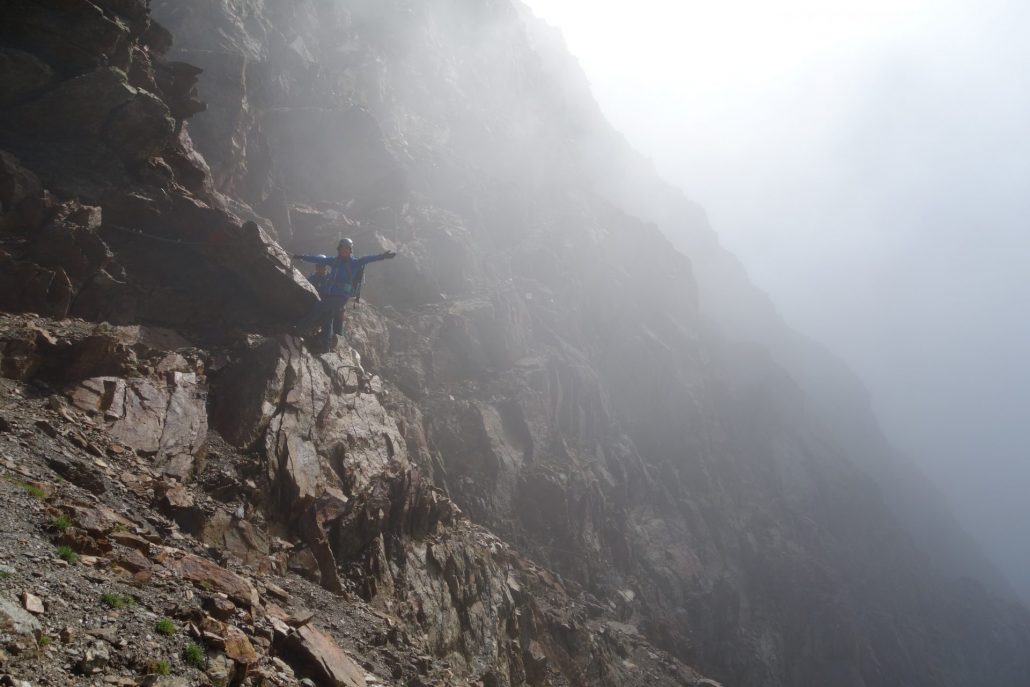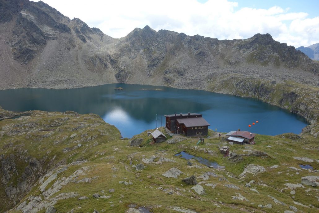 Der nächste Tag begann wettertechnisch sehr durchwachsen. Leichter Nieselregen im Wechsel mit Sonnenschein begleitete unseren Aufstieg zur oberen Seescharte. Von dort konnten wir den Wangenitzsee mit gleichnamiger Hütte hinter ziehenden Nebelschwaden erblicken. Kurz vor Mittag erreichten wir die Hütte. Wie vom Wetterbericht vorhergesagt, besserte sich das Wetter tatsächlich und kurzentschlossen machten wir uns auf zum Petzeck, das mit 3.283 m den höchsten Berg der Schobergruppe darstellt. Nach knapp 3 Stunden Aufstieg hatten sich die letzten Nebelfetzen verzogen und wir standen am Gipfel. Dort genossen wir die schöne Sicht auf den Großglockner und unser Ziel für den nächsten Tag, die Noßberger Hütte. Der Abstieg ging etwas flotter und so erreichten wir die Hütte nach 1.700 Hm Aufstieg an diesem Tag und kurz vor dem Abendessen um 18 Uhr.