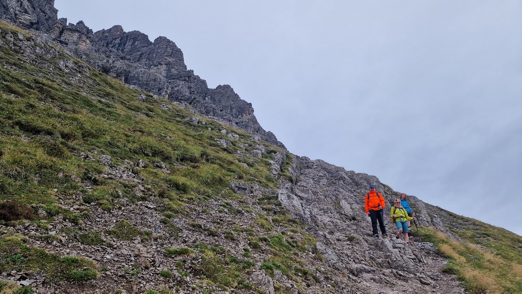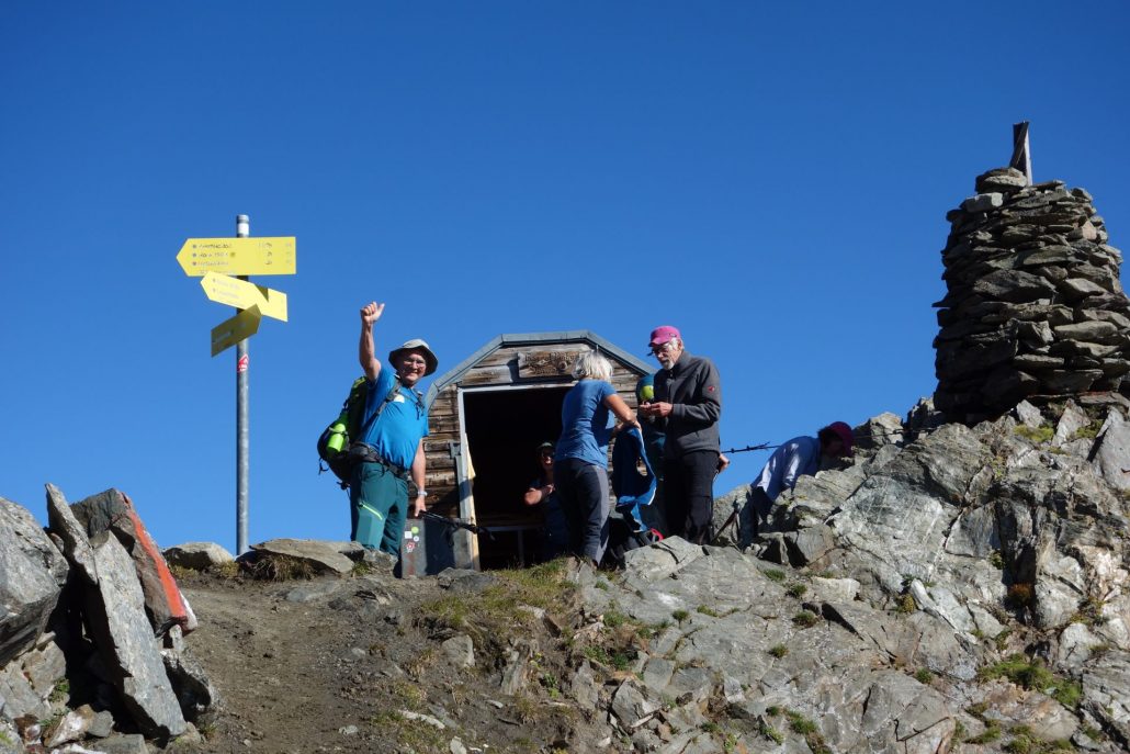 An unserem letzten Tag erreichten wir über einen seilversicherten Steig und Abstieg ins Leiterbachtal bald die Salmhütte. Unter dem Schwerteck und Schwertkopf querten wir höhengleich zur Stockerscharte und zu dieser dann rund 100 Hm steil bergauf. Oben hatten wir einen fantastischen Blick zum Großglockner, zur Pasterze mit Sandersee, dem Margaritzenstausee und die Gletscherstrasse zur Franz Josefs Höhe. Nach 400 Hm Abstieg zum Stausee und 200 Hm Aufstieg kommen wir am Glocknerhaus auf 2.132 m an und haben unser Endziel erreicht. Zeit zum Mittagessen und angenehme Wartezeit auf den Postbus, der uns zu unserem Ausgangspunkt am Pass Iselsberg bringt.