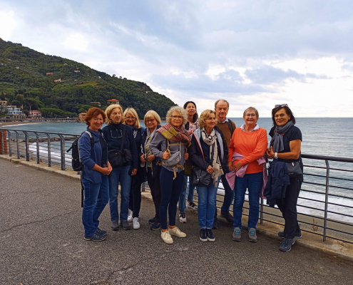 Die Anreise an die ligurische Küste erfolgte mit dem Nightjet der ÖBB von Salzburg nach Levanto ohne umsteigen. Zu einer ersten Orientierung im Ort hatten wir nach dem Einchecken im Hotel Palace reichlich Zeit um den überschaubaren Ort zu inspizieren. Sei es ein Spaziergang am Strand oder ein Cappuccino in einer der vielen Bars an den verkehrsberuhigten Sträßchen. Ziel der ersten Wanderung war die nördlichste der 5 Dörfer: Monterosso. Die moderate Wanderung führte über Straßen und Pfade zum Punta Mesco und dann hinab nach Monterosso. In dieser Gegend lud der Erdbeerbaum mit reifen Früchten am Wegrand zum Naschen ein. Trotz Bewölkung und leichtem Regen konnten wir die herrliche Landschaft genießen. Der regenreichste Tag war wohl Dienstag. Wir nutzten den nicht ganz so nassen Vormittag um nach Bonassola zu wandern und blieben auch im starken Wind auf Kurs. Am Mittwoch war die Wanderung nach Portofino angesagt. Dort hatten wir Glück den Ort ohne Massen an Kreuzfahrtschiff-Touristen vorzufinden. Es war sogar eine Wanderung bis zum Leuchtturm möglich. Zum Mittagessen fanden wir rechtzeitig, als ein Regenguss im Anmarsch war, ein Lokal mit Biergarten und Überdachung. So konnten wir, abgesehen von dem Bach der am Boden durchlief, trockenen Hauptes Spaghetti und Fisch genießen. Am nächsten Tag besichtigten wir die fünf Dörfer Riomaggiore, Manarola, Corniglia, Vernazza und Monterosso. Natürlich blieb die Via dell' Amore nicht auf der Strecke. Sie wurde erst 2024 nach langer Reparatur wieder freigegeben und ist, wegen dem großen Ansturm an Touristen, in nur einer Richtung begehbar. Wir merken an dieser Stelle von den Touristen nichts, nur in den Dörfern konzentrierten sich die Massen. Kaum ging der Wanderweg über die Berge hatte man seine Ruhe. Die Top-Wanderung fand am Freitag statt. Wir fuhren mit dem Zug nach Riomaggiore und machten uns auf den Weg nach Porto Venere. Wunderbare Ausblicke auf die Steilküste, Meer und Landschaft sorgten bei Sonnenschein für Begeisterung. Die Rückfahrt mit dem Schiff machte zu hoher Seegang unmöglich. So nahmen wir das Boot nach La Spezia und fuhren mit dem Zug zurück. Am Abreisetag war noch genügend Zeit sich bis 18 Uhr die Zeit zu vertreiben. Sei es am Strand, einer Bootsfahrt nach Riomaggiore (die am Samstag wieder möglich war) oder einer Wanderung auf den Mt. Streghe und Mt. Rossola. Am Sonntagmorgen kamen wir pünktlich in Salzburg an. Für alle war die Reise, abgesehen von den gewöhnungsbedürftigen Umständen im Liegeabteil, ein Genuss.