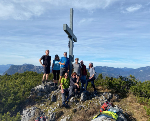Am Sonntag ging es bei schönem Wetter in die Berge. Ziel war diesmal das Große Hundshorn südlich der Reiteralpe bei Lofer. Es ist ein selten besuchter, aber toller Aussichtsberg. Start war am Parkplatz bei St. Martin. Die Strohwollner Schlucht war leider wegen Steigerneuerung gesperrt und so führte unser Weg daran vorbei. Ein schönes Steiglein führte uns durch Bergwald hinauf zur Scheffsnother Alm und weiter über Almwiesen zum Hundsattel. Hier zweigte der Gipfelsteig ab, der unerwartet noch eine Scharte mit Gegenanstieg bereit hielt. Am 1705m hohen Gipfel gab es die wohlverdiente Brotzeit und einen grandiosen Rundblick auf die Chiemgauer Alpen, zum Venediger und auf die steilen Südwände der Reiteralpe-Gipfel. Danach wanderten wir zurück zum Hundsattel und südseitig hinab zur gleichnamigen Alm. Nach 3km Forststraße durch die schönen Berghöfe des Wildentals, erreichten wir die Wildenbachschlucht, die uns mit 2 stürzenden Wasserfällen für die gesperrte Klamm entschädigten! Bei nachmittäglichem Sonnenschein wanderten wir durch den Herbstwald, das Tal hinaus zum Parkplatz. Einen gemütlichen Ausklang gab's beim Wurznwirt in Schneitzlreuth, wo eine gelungene Tour an einem goldenem Herbsttag ausklang. Harald Wagner