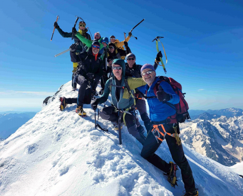 Der Donnerstag beginnt mit Wecken um 2.45 Uhr. Frühstück 3.00. Abmarsch 3.30 Uhr. Nach einer Stunde wechselten wir die „Bereifung“: Statt Steigeisen waren hier die Schneeschuhe die erste Wahl. So beschritten wir den langen Weg über den Hohlaubgletscher. Wir munkelten, dass der ein oder andere, der sich hier durch den Schnee wühlte, neidisch auf unsere Schneeschuhe war.