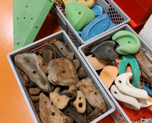 Wir verkaufen gebrauchte Klettergriffe (Aus Kunststoff und Holz) sowie Volumen, die wir in der Halle nicht mehr verwenden.Mehr Infos finden sich hier.