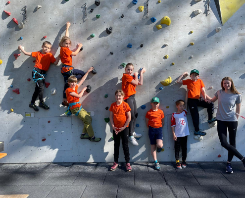 Nach mehreren gemeinsamen Trainings der Wettkampfgruppe war es endlich soweit und die ersten Wettkämpfe des Jahres standen an. Dabei glänzten die Burghauser Kletterer bei zwei aufregenden Wettkämpfen, dem Kidscup 5.0 in Waldkraiburg am 27.04.2024 und dem Bouldercup am 04.05.2024 in München Freimann. Mit großem Einsatz und Kampfgeist zeigten die jungen Athleten ihr Können und bewiesen, dass sie bereit sind, sich den Herausforderungen des Wettkampfkletterns zu stellen.Beim Kidscup 5.0 hatten die Burghauser anfangs Schwierigkeiten mit dem Speedklettern, einer Disziplin, die für sie neu war. Dennoch kämpften sie sich durch die Qualifikation und es schafften drei Teilnehmer ins Finale einzuziehen. Arik, Philip und Bennet zeigten beeindruckende Leistungen an der Lead-Route und gaben alles, um ihr Ziel (das Top) zu erreichen. Auch Florian, Jonas, Kerstin und Theresa zeigten großen Einsatz und Teamgeist während des gesamten Wettkampfs.Der Wettkampf bot den Teilnehmern auch die Möglichkeit, an Bonus-Challenges teilzunehmen und Sachpreise zu gewinnen. Selbst die jüngeren Kinder konnten sich hier beweisen und ihre Begeisterung für das Klettern zeigen.Beim Bouldercup in München Freimann traten Lea und Arik gegen ein großes Teilnehmerfeld an und zeigten trotz Schwierigkeiten bei den Bouldern mit Sprüngen eine starke Performance. Die beiden kämpften sich durch die anspruchsvollen Routen und erreichten gute Platzierungen in ihren Altersklassen.Die Teilnahme an beiden Wettkämpfen war für die Burghauser eine wertvolle Erfahrung, bei der sie nicht nur sportlich gewachsen sind, sondern auch wichtige Team- und Wettkampferfahrungen sammeln konnten. Mit Ehrgeiz und Entschlossenheit haben sie gezeigt, dass sie bereit sind, sich kontinuierlich weiterzuentwickeln und neue Herausforderungen anzunehmen.